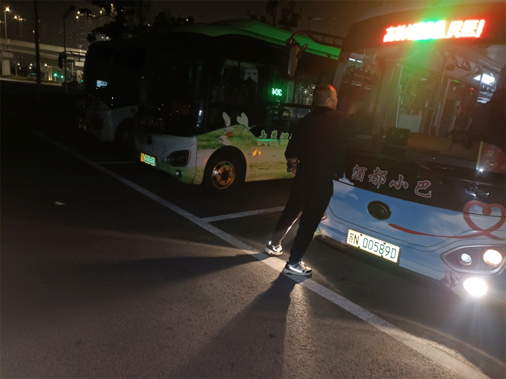 在仔细确认了车辆的安全性能后,又细心地擦干净车窗上的水雾,早上6:00,叶敬涛稳稳将车停在高铁宿迁站公交发车区,等待着第一批乘客。